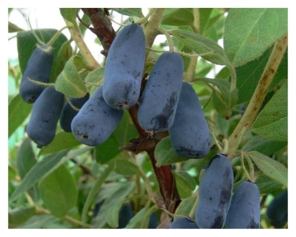 Die Haskap-Erdbeere ist eine extrem widerstandsfähige und unprätentiöse Pflanze. Es handelt sich um einen mehrjährigen Strauch, der bis zu 2 m hoch wird. Sein Name ist etwas irreführend, da er nicht mit klassischen und amerikanischen Blaubeeren verwandt ist. Haskap-Erdbeersträucher gedeihen in der Natur in Russland, China und auf der japanischen Insel Hokkaido. Sie gedeihen in gewöhnlicher Gartenerde. Sie blühen sehr früh, im März oder April, mit gelben Blüten, und die Früchte reifen von Mai bis Juni. Um die Bestäubung zu gewährleisten, müssen wir mindestens zwei verschiedene Sorten von Haskap-Erdbeeren im Garten haben. Die volle Fruchtbildung erfolgt im vierten oder fünften Jahr des Sämlings. Die Früchte der sibirischen Heidelbeeren haben eine längliche Form und sind ziemlich säuerlich, ihre Größe variiert stark von Sorte zu Sorte. Die Früchte eignen sich für die Verarbeitung und den Frischverzehr. Die Sorte ‚Myberry Bee‘ gehört zur Gruppe der großfrüchtigen sibirischen Heidelbeeren. Sie gehört zu den mittelfrühen Sorten. Sie blüht Ende März oder im April, die Früchte reifen im Mai oder Juni. Die Früchte sind bis zu 3 cm groß, dunkelblau gefärbt und länglich in der Form. Um die Bestäubung zu erleichtern, wird empfohlen, mit der Sorte ‚Myberry Farm‘ zu pflanzen.
