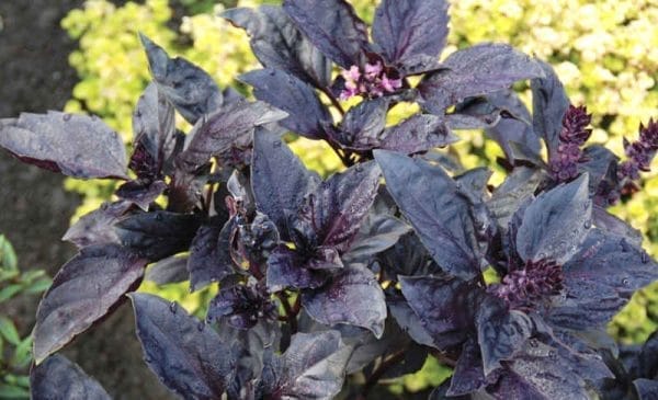 Enoletna rastlina, ki oblikuje rjavo–rdeče liste z intenzivno aromo. Sorta bazilika, ki je nekoliko višje rasti. Listi so primerni za dekoracijo različnih jedi. Posajena je v lončku skupaj za baziliko Genovese, kar ji naredi lep barvni kontrast.