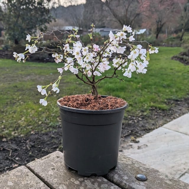 Japonska pritlikava okrasna češnja ‘Kojou-no-mai’ je izjemno dekorativna, počasi rastoča okrasna rastlina z značilno cik-cak razrastjo poganjkov. Spomladi se obilno odene v nežne rožnato-bele cvetove, ki se pojavijo še pred olistanjem in ustvarijo zelo eleganten videz. Zaradi kompaktne rasti je idealna za manjše vrtove, atrije, predvrtove in večje posode. Jeseni navduši še z lepim jesenskim obarvanjem listov.