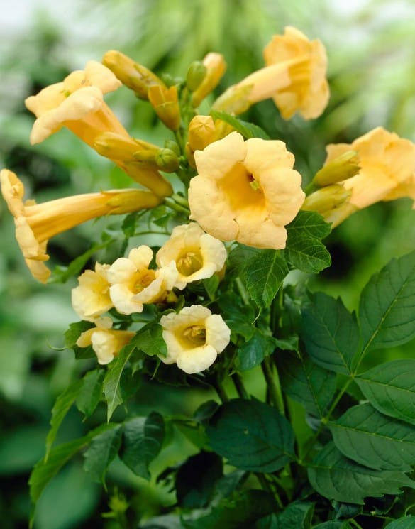 Če želite hitro ustvariti bujen, cvetoč poudarek na vrtu, je Campsis ‘Golden Trumpet’ ena najboljših izbir.