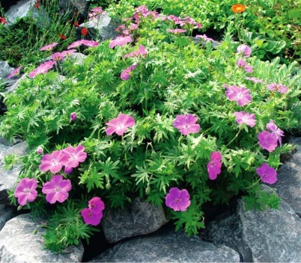 Sijoči vijolični cvetovi se lesketajo nad gosto blazino listja. V jeseni se listje obarva sijoče rdeče. Idealna trajnica za zasaditev skalnjakov ali gredice pod drevesi.