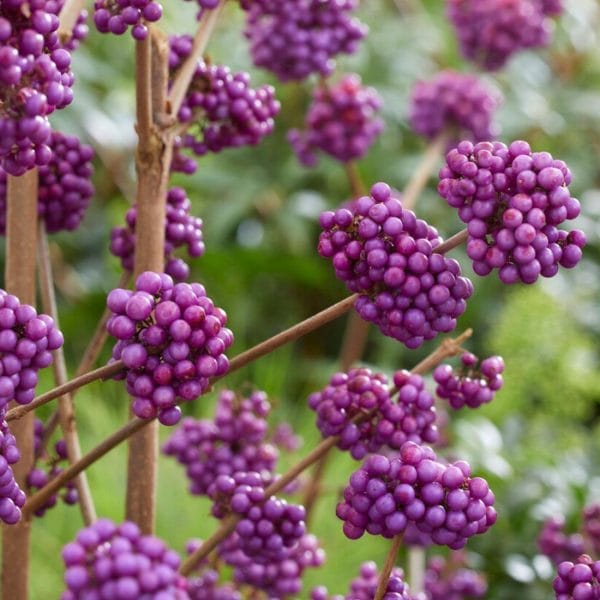 Callicarpa bodinieri ‘Profusion’ je listopadni grm, znan po svojih izjemnih, bleščeče vijoličnih jagodah, ki krasijo veje jeseni in pozimi. Doseže višino do 2–3 metre in tvori pokončno, gosto krošnjo z ovalnimi, rahlo nazobčanimi listi, ki jeseni zažarijo v rumenih in vijoličnih odtenkih. Cveti poleti z drobnimi rožnatimi cvetovi, ki privabljajo opraševalce. Najbolje uspeva na sončnih ali polsenčnih legah v humoznih, dobro odcednih tleh. Odporen proti mrazu. Odličen za skupinske zasaditve ali kot soliter.